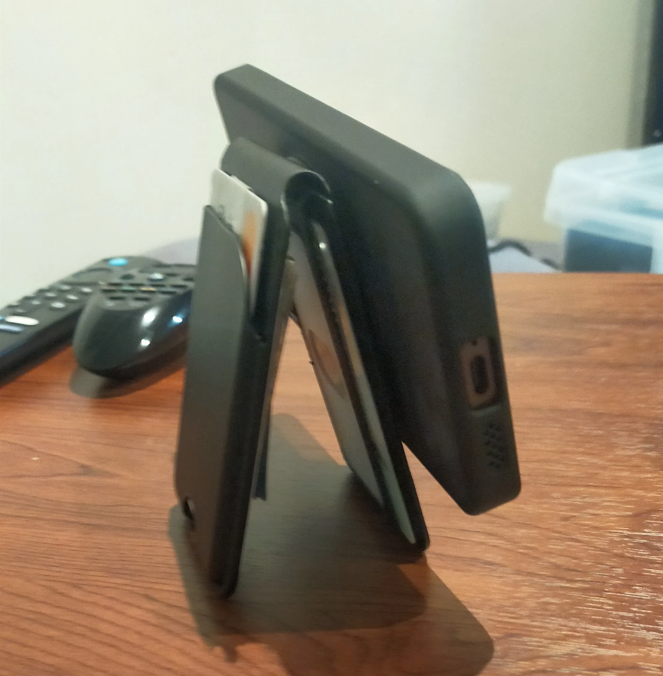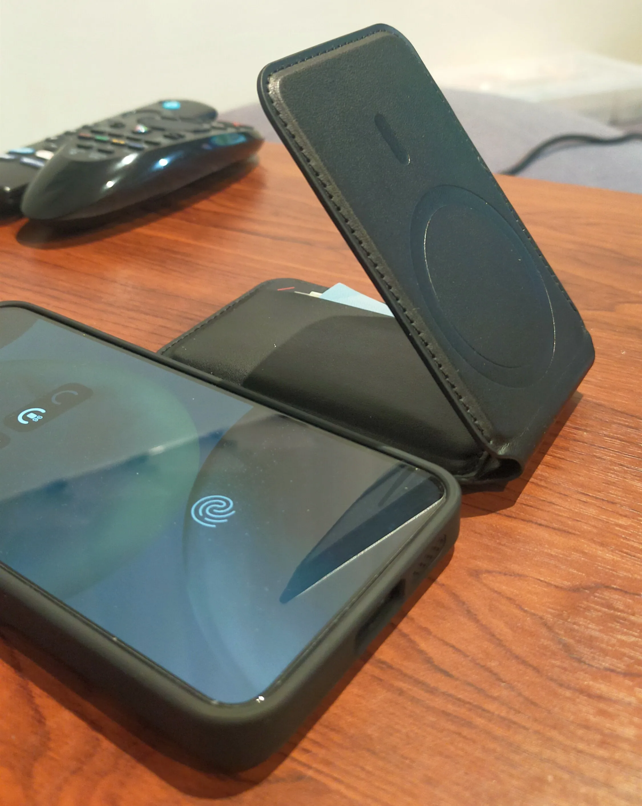 It’s neat. The storage space can fit 3 to 4 cards comfortably, and the phone stand function works well.
