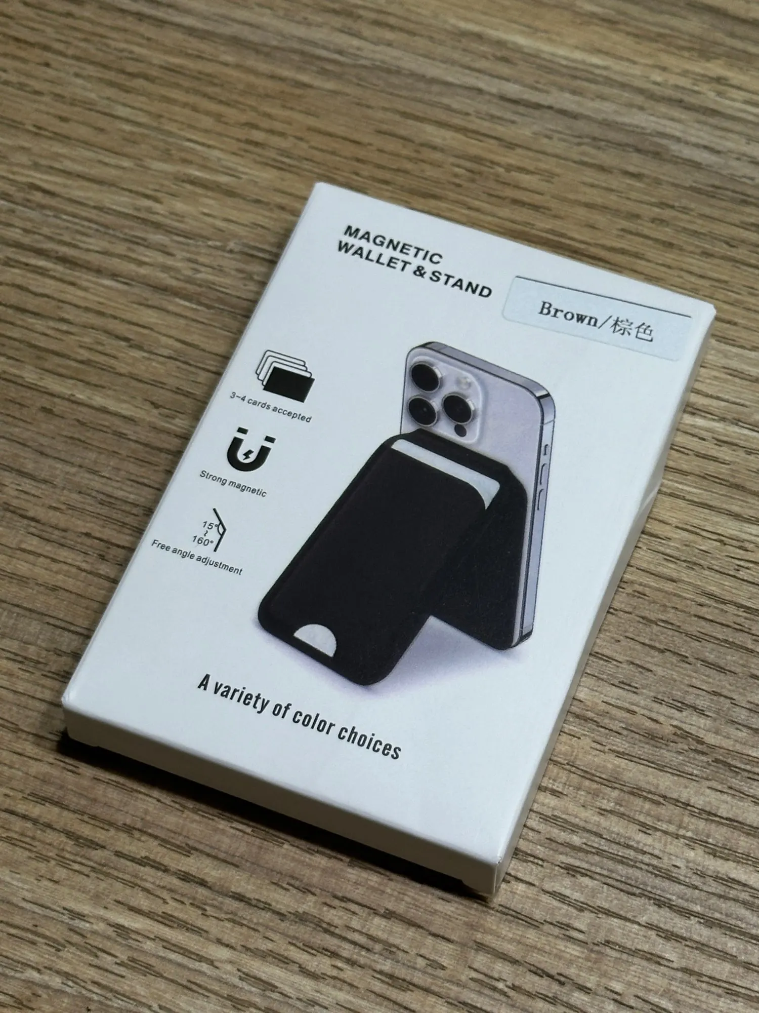 My favourite wallet, i ordered dark blue this time. I recieved it on time and in excellent condition. The magnets stick well to my phone and i can fit 2 cards plus a few notes, but the notes should be folded in three so they don’t protrude. The seller deserves 5 stars for excellent service and reasonable prices.
