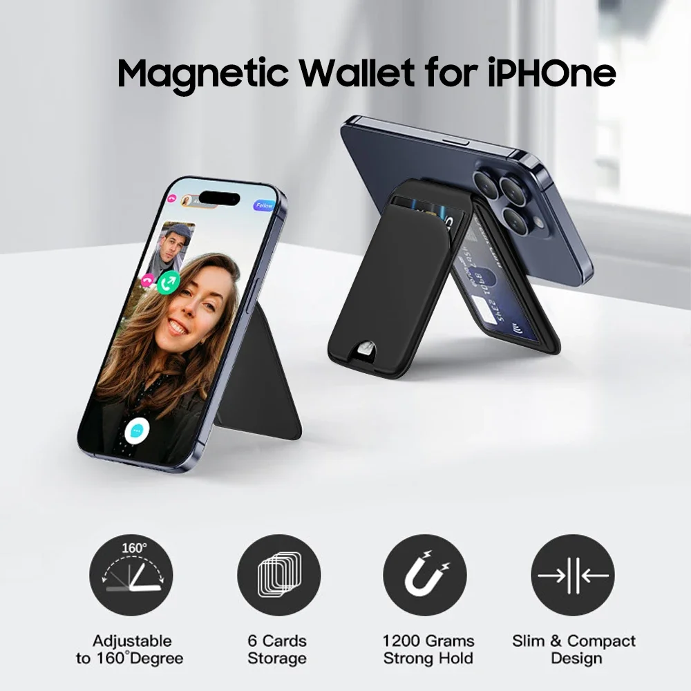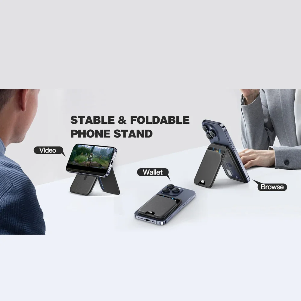 The phone wallet has a built-in adjustable hinge, which supports three support modes: horizontal screen, vertical screen and hanging. You can adjust wallet Mag-Safe within 180 degrees as needed to achieve a satisfactory effect