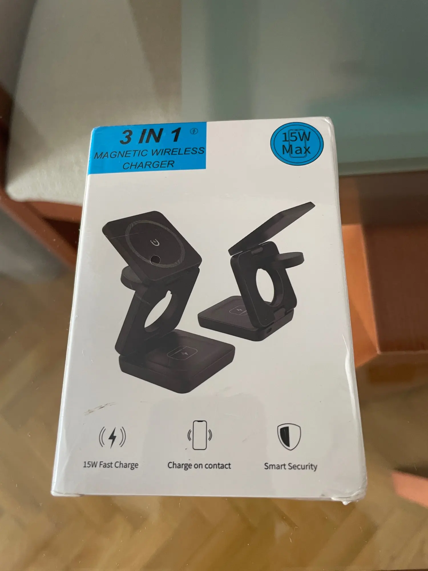 Practical, compact, and well finished. It works very well. You can charge three devices simultaneously. A second phone can also be charged at the bottom. Fast shipping.