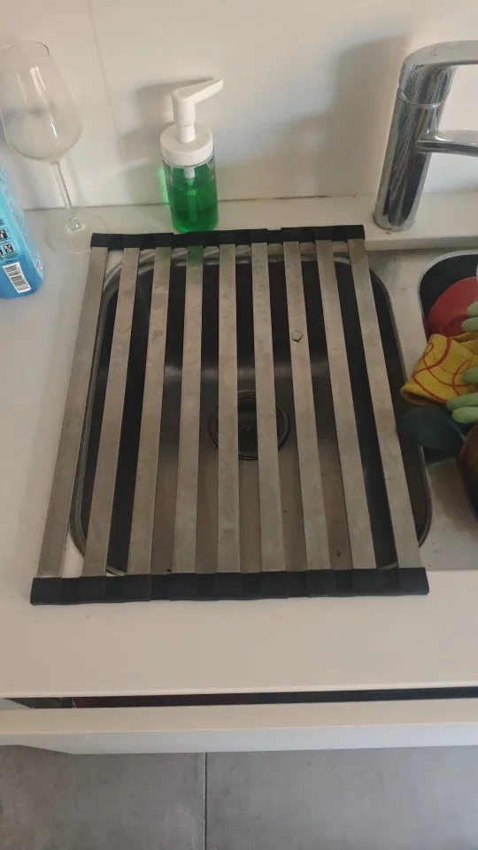 Super accessory. Solid and of good quality. Several functions possible as described in the description (drainer, support for placing a cutting board…) I love it!
