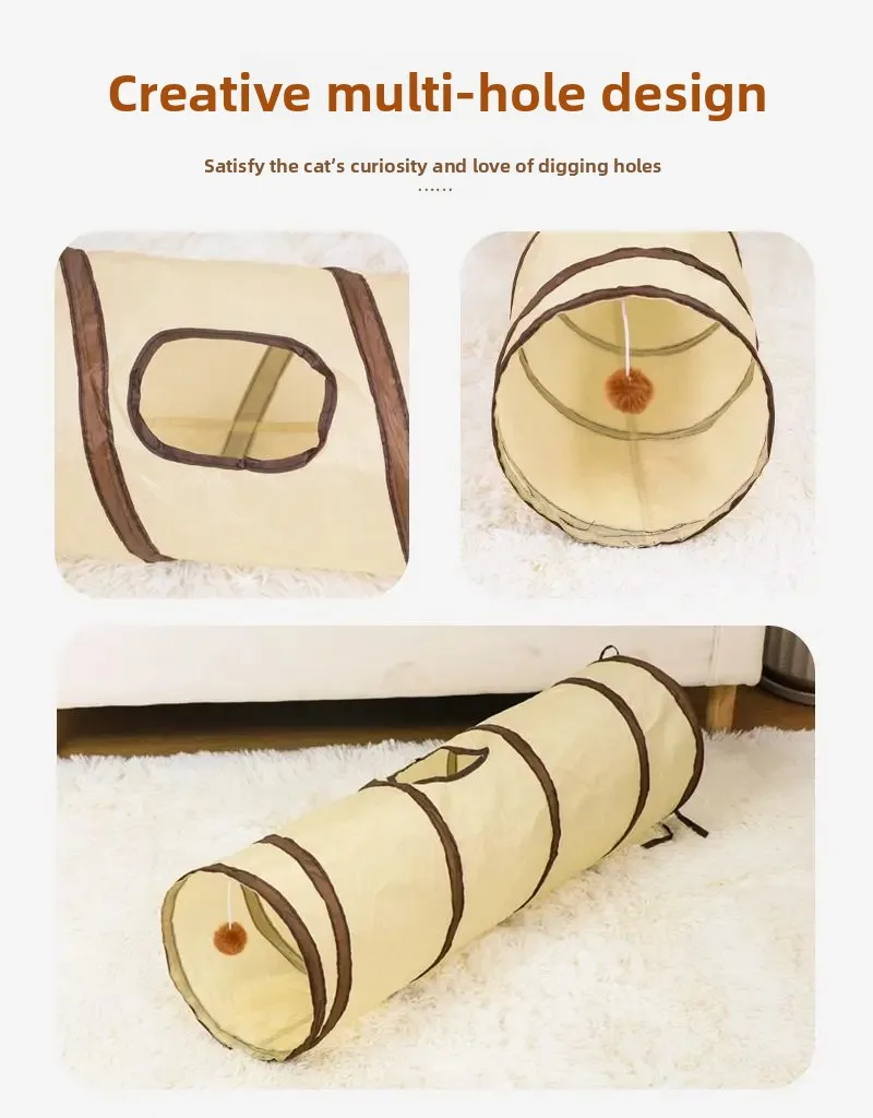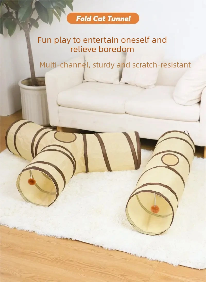 Foldable Easy-to-Store All-in-One Cat Play Tunnel – Striped Interactive Toy for Fun and Exploration Kitten Toy Cat Play Tunnels