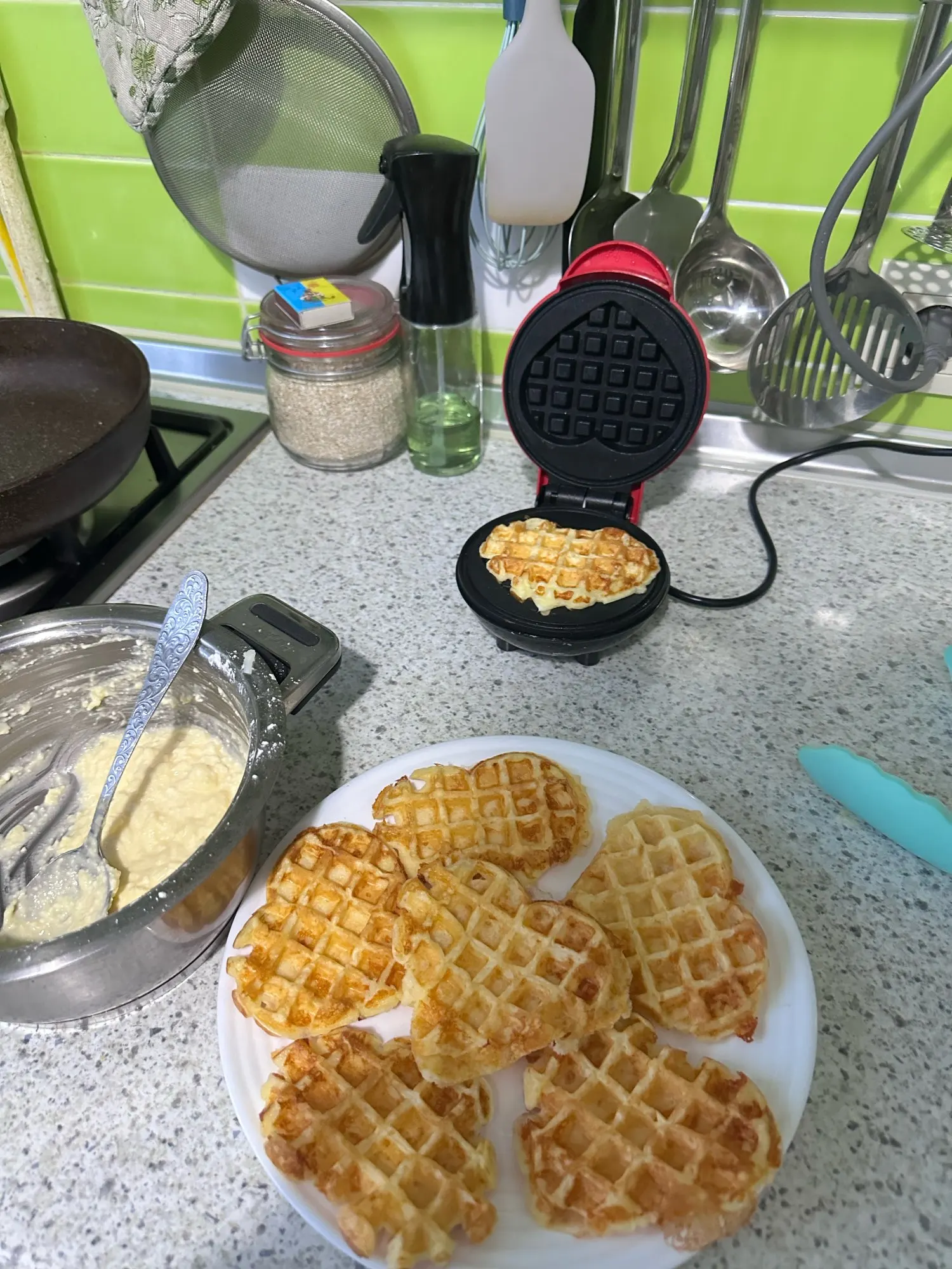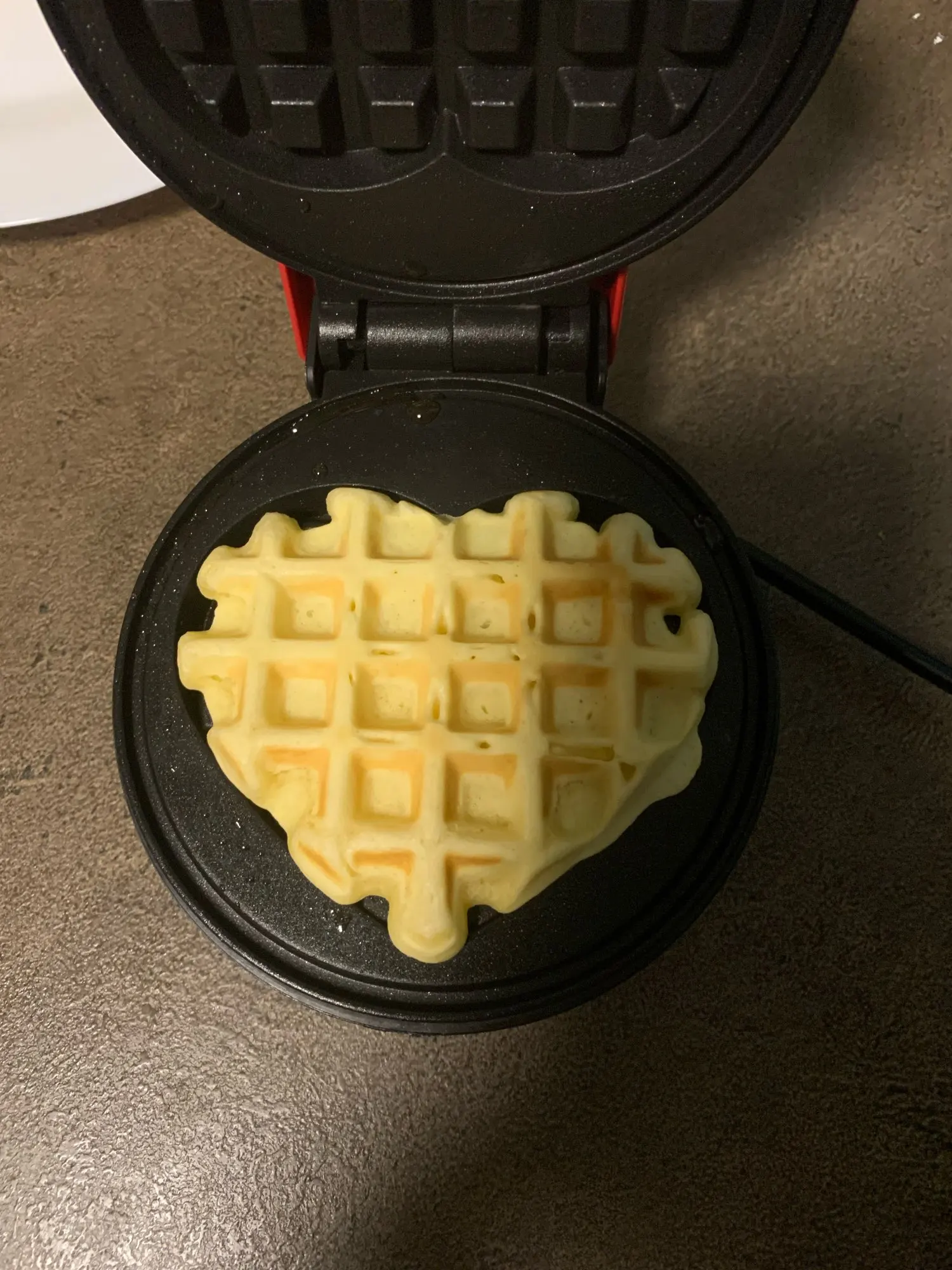 I bought this waffle maker to make diet waffles – a friend of mine lost weight and recommended it. The waffle maker is compact, for one waffle. It cooks well, one waffle takes about 5 minutes. Everything is very simple. I’m satisfied with the waffle maker. But, if it’s for a family, you need a waffle maker for 2-4 waffles. One is enough for me.