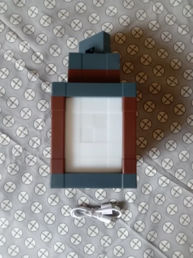 Pixelated Night Light Lantern has a built-in rechargeable battery and comes with a USB charging cable. A full charge can last for about 8 hours.