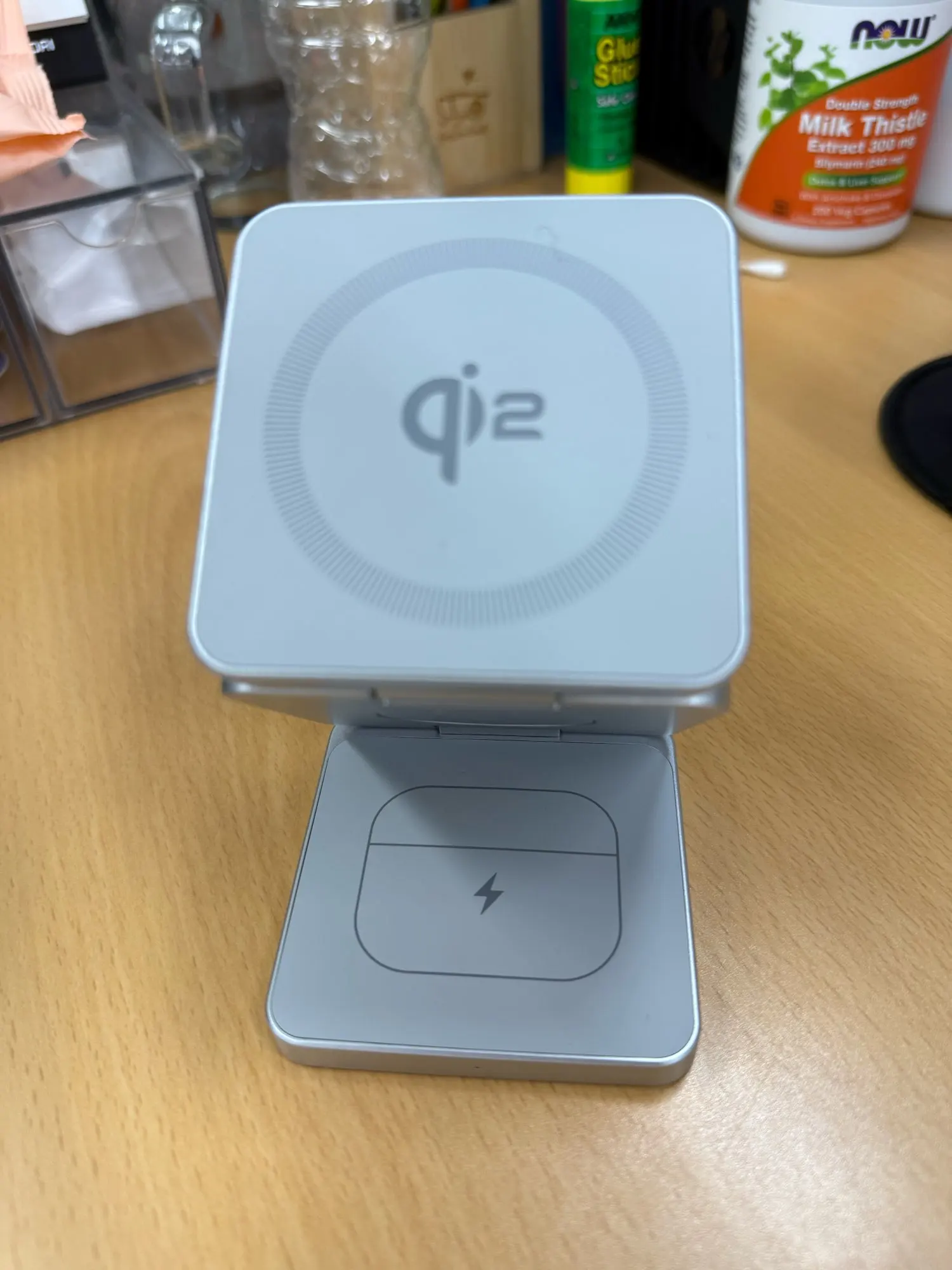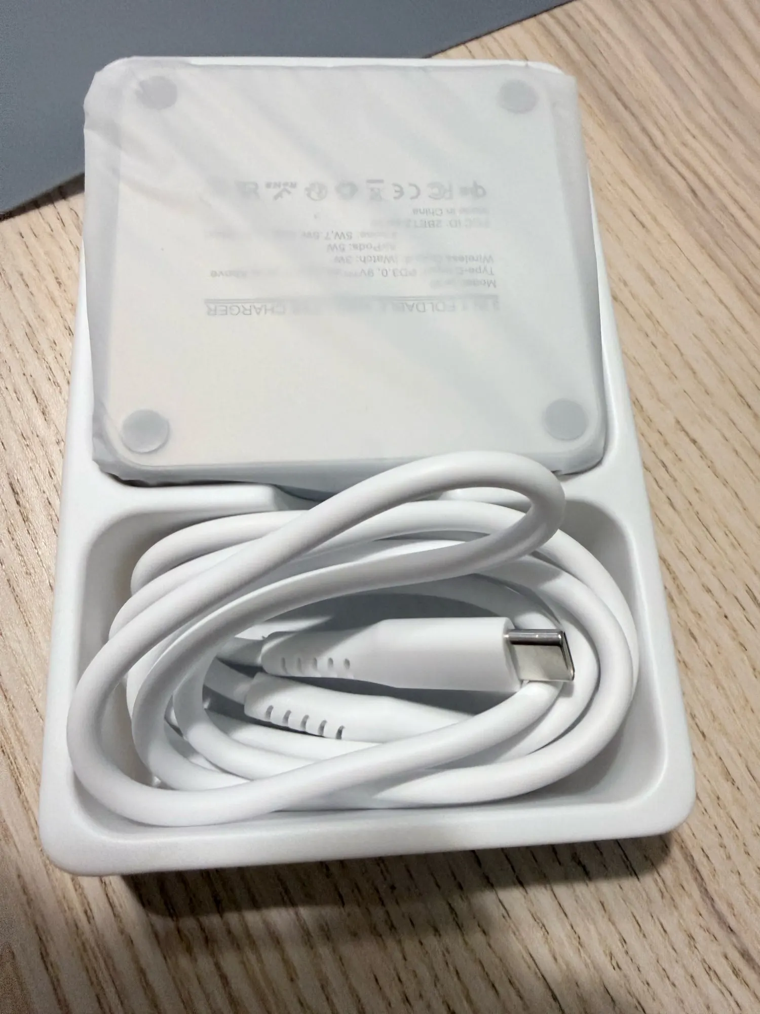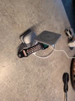 Super practical, I use it as a travel charger for my iPhone 📱, my Apple Watch ⌚️, and my AirPods 🎧, and it works perfectly. It folds up and takes up about the space of 3 square coasters together. Great 🙌