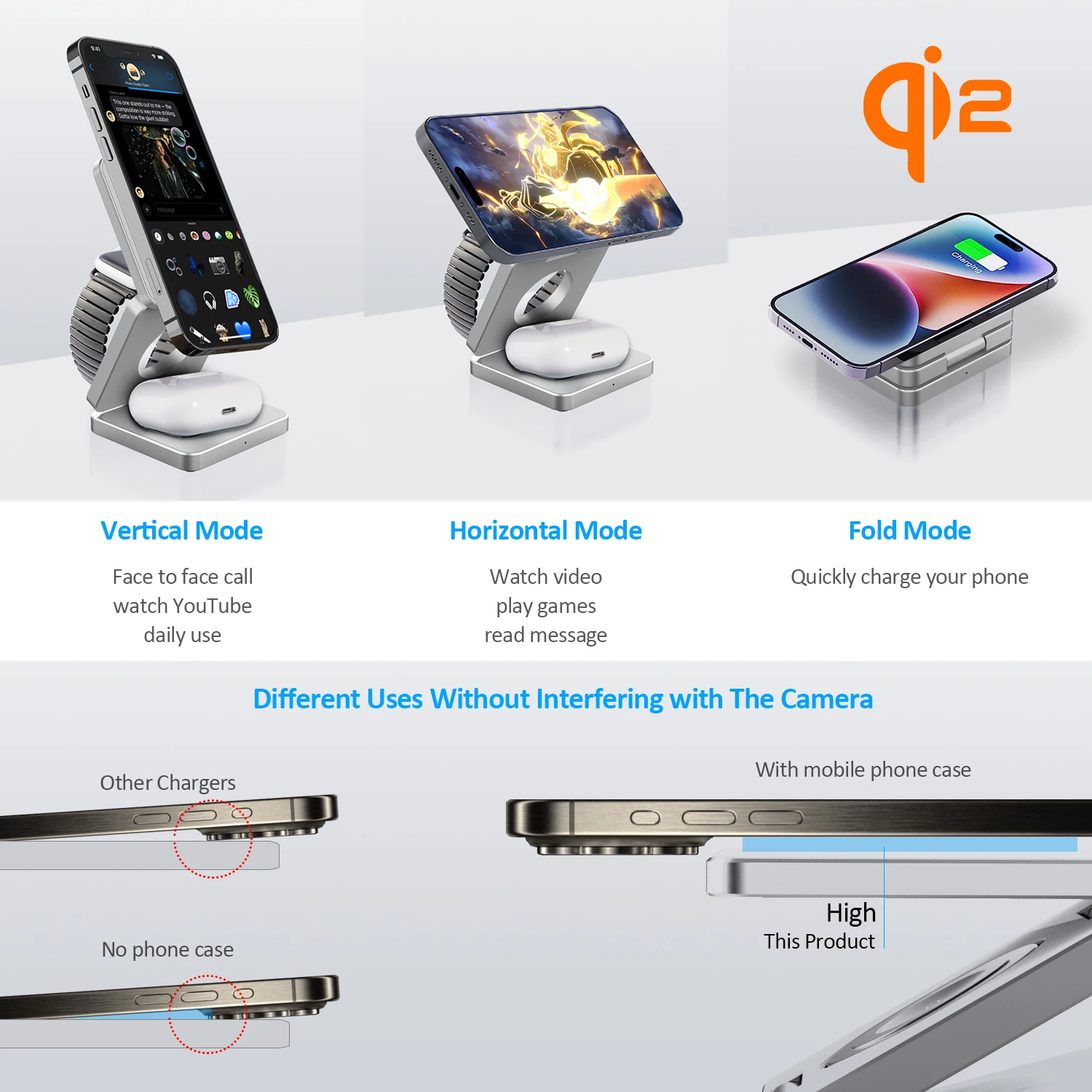 Multifunctional, Foldable, With Cable, for Multiple Devices, Qi Certification