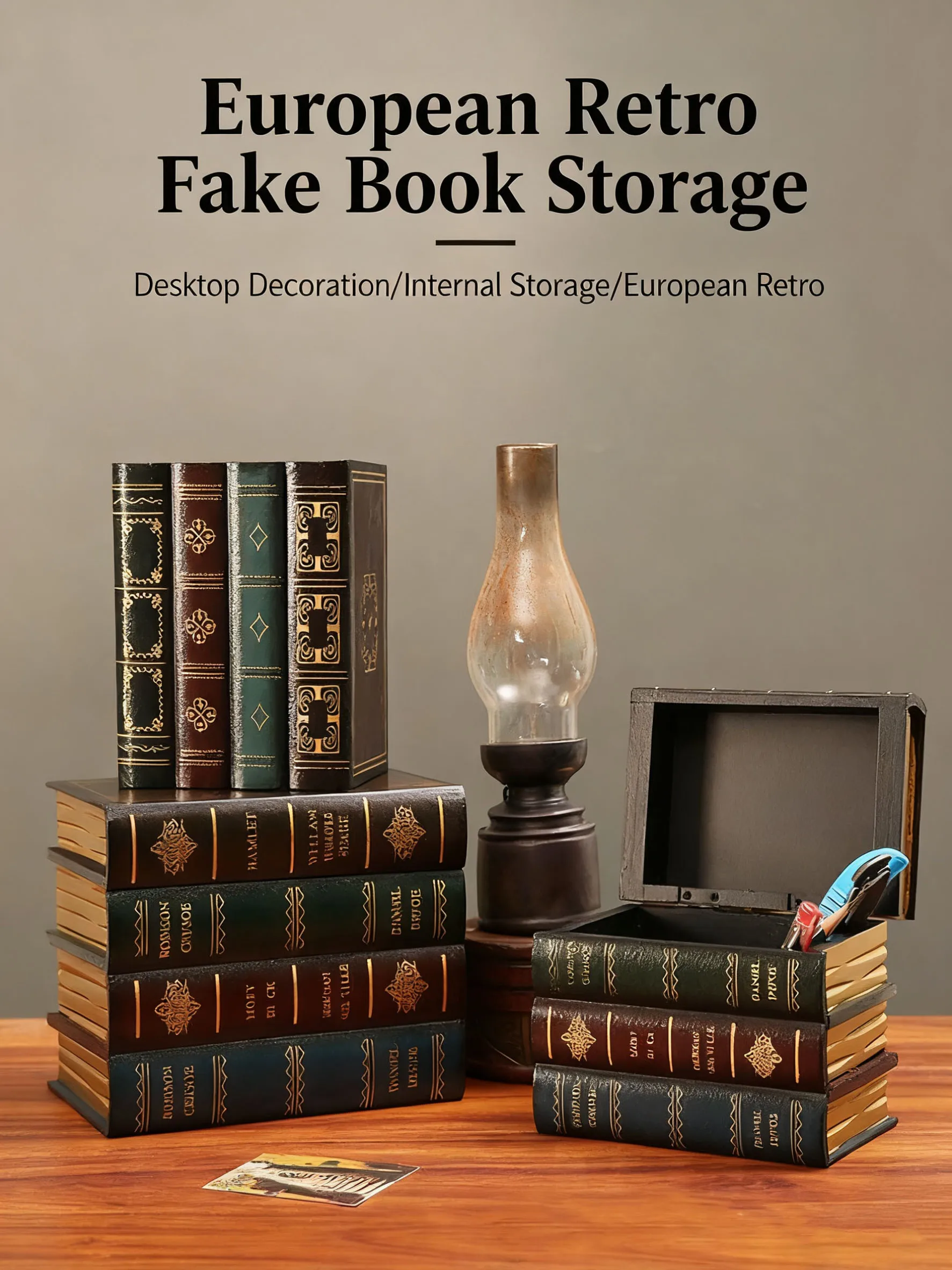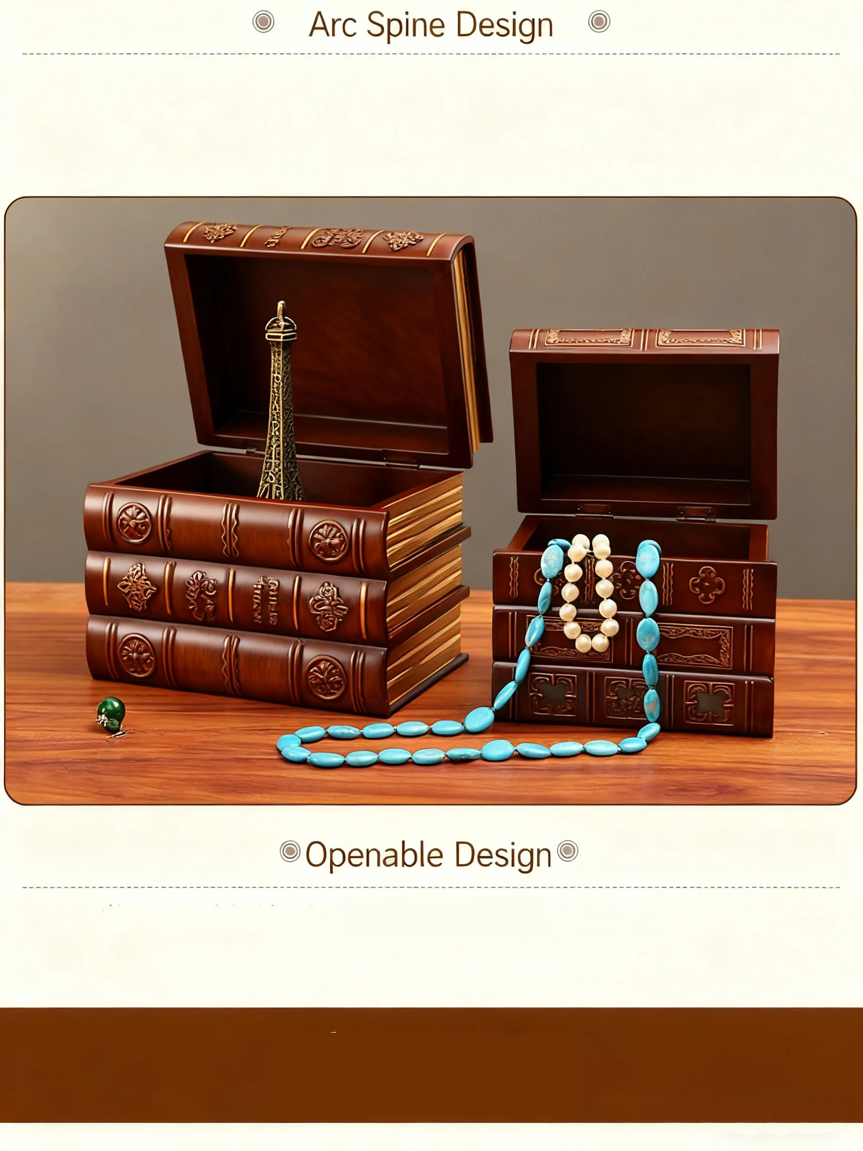 Retro Style Wooden Book-Shaped Storage Box | With Lid & Stackable Design, Exquisite Book Appearance – Desktop Storage Essential