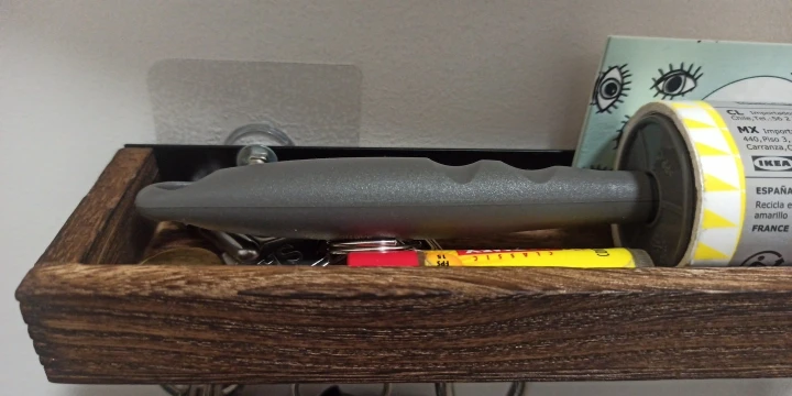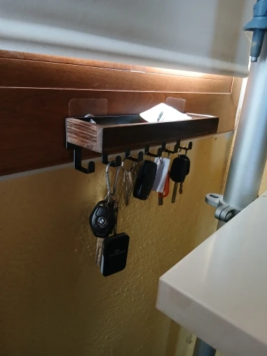 Easy to install, without drilling the wall, looks nice and can hold the weight of keys.