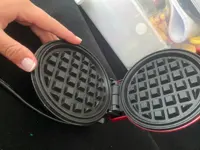 Very small, has a timer and waffles don’t stick. Not convenient to clean.