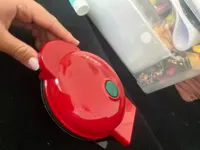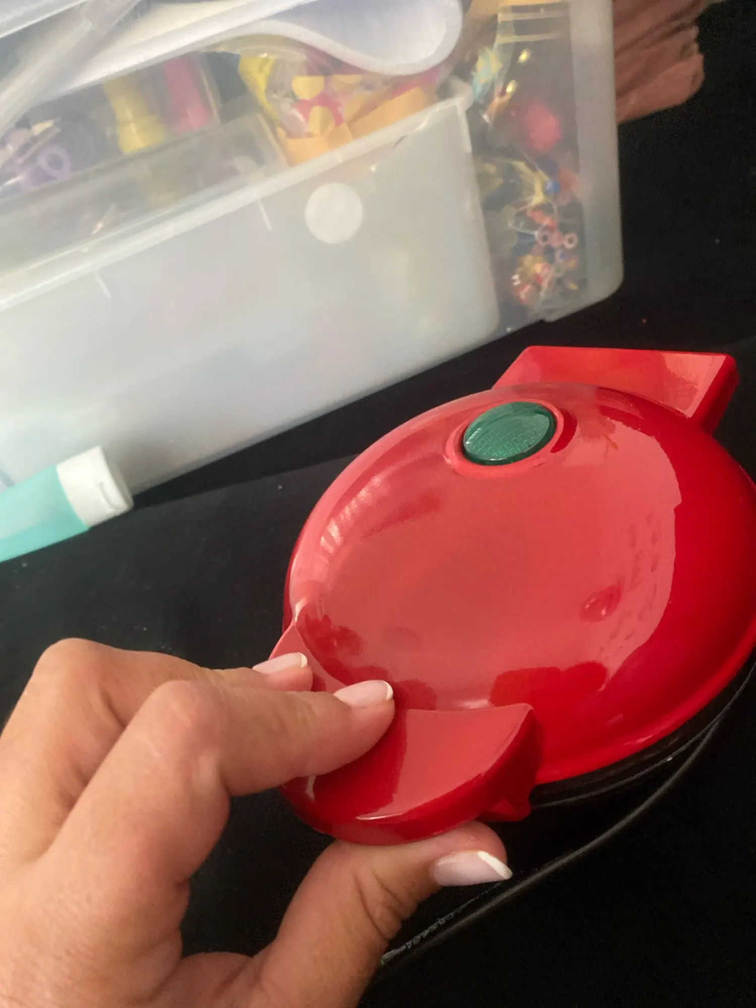 A cute waffle maker for one person or as a toy for a girl learning to cook! I will give it to my granddaughter.