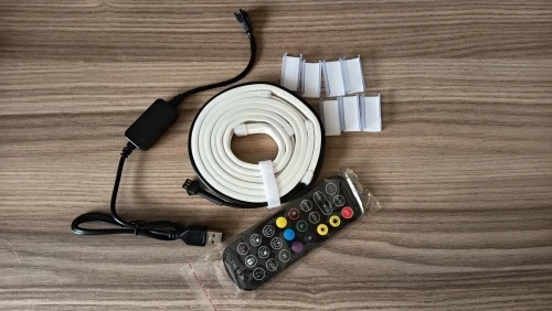 Satisfied with the purchase. It comes rolled up and secured with Velcro. remote control and instructions for use, as well as the app for managing from your mobile.